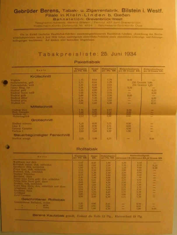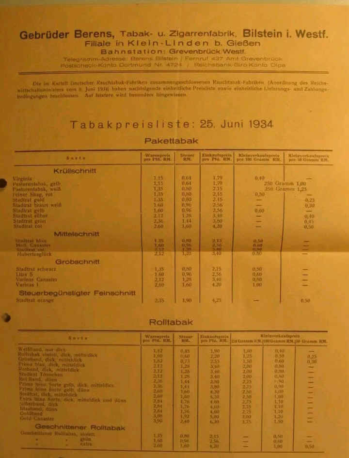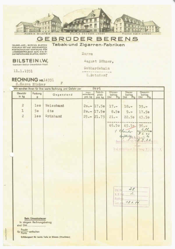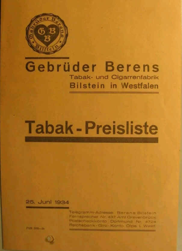 Berens GmbH Tabak- u. Zigarren - Herstellung, Importe, gegr. 1867, Stammhaus in Bilstein,